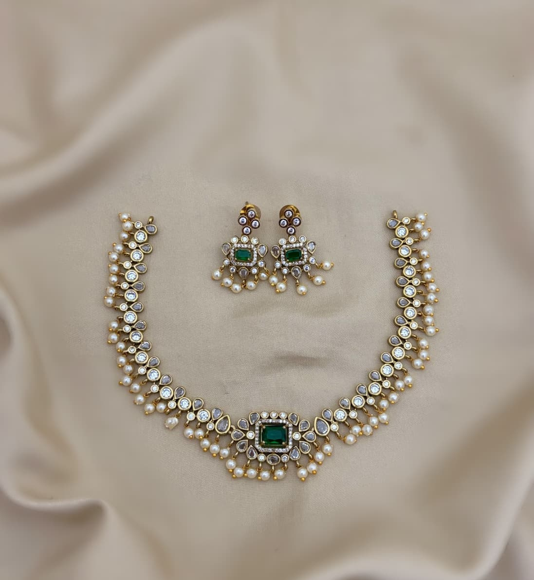 Elegant and timeless, the AD jewellery set includes a necklace and earrings. Designed to combine sophistication with traditional charm, it is perfect for both weddings and special occasions.