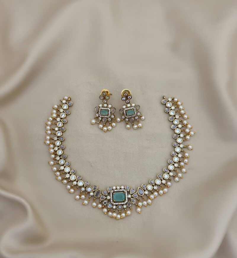 Elegant and timeless, the AD jewellery set includes a necklace and earrings. Designed to combine sophistication with traditional charm, it is perfect for both weddings and special occasions.