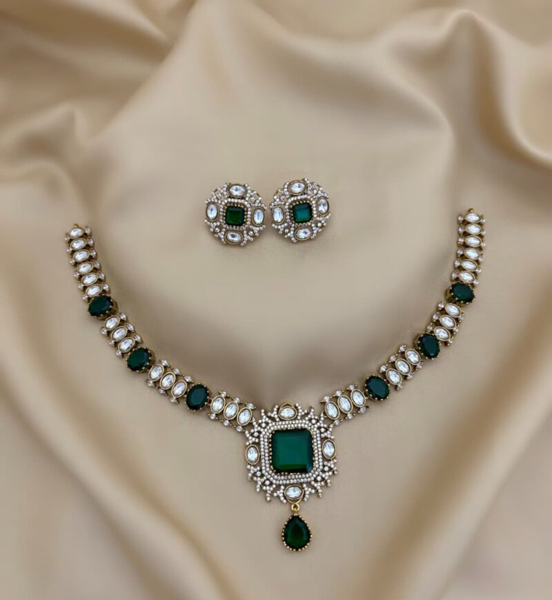 Elegant and timeless, the AD jewellery set includes a necklace and earrings. Designed to combine sophistication with traditional charm, it is perfect for both weddings and special occasions.