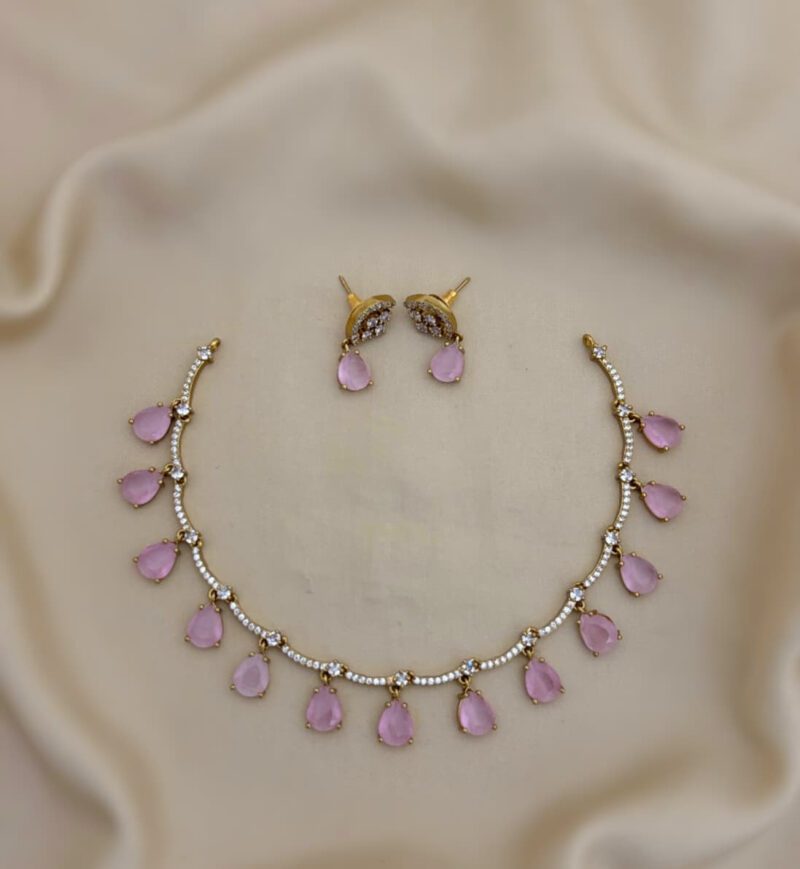 Elegant and timeless, the AD jewellery set includes a necklace and earrings. Designed to combine sophistication with traditional charm, it is perfect for both weddings and special occasions.