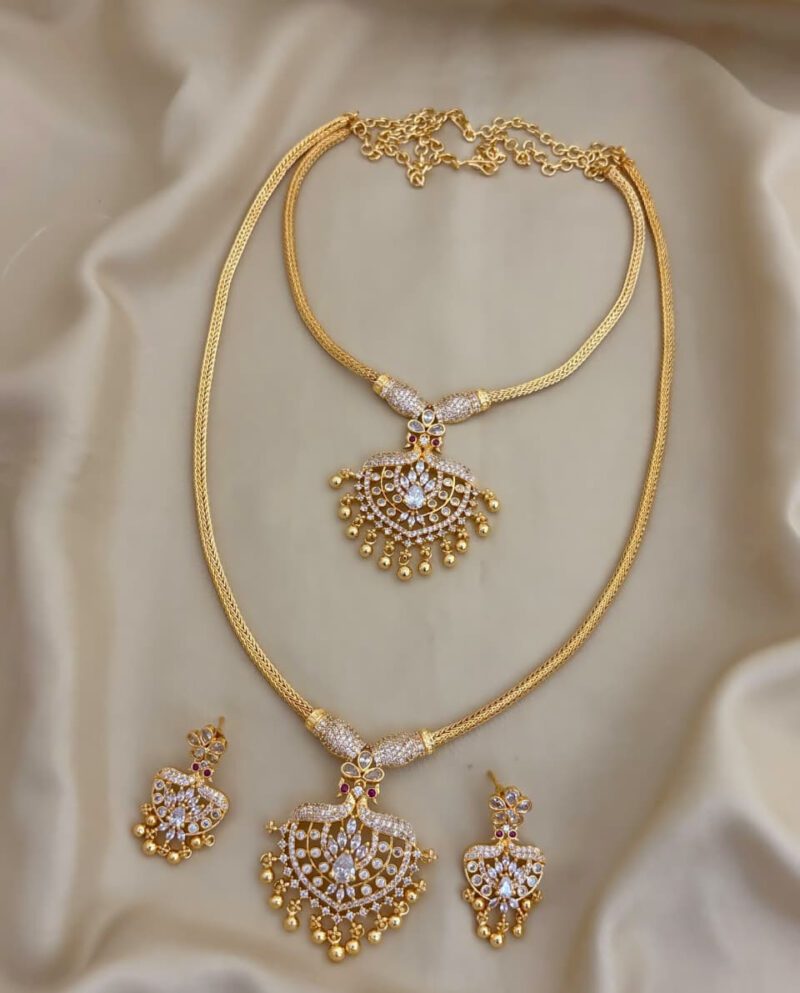Elegant and timeless, the AD jewellery set includes a necklace and earrings. Designed to combine sophistication with traditional charm, it is perfect for both weddings and special occasions.