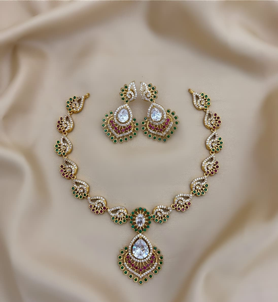 Elegant and timeless, the AD jewellery set includes a necklace and earrings. Designed to combine sophistication with traditional charm, it is perfect for both weddings and special occasions.