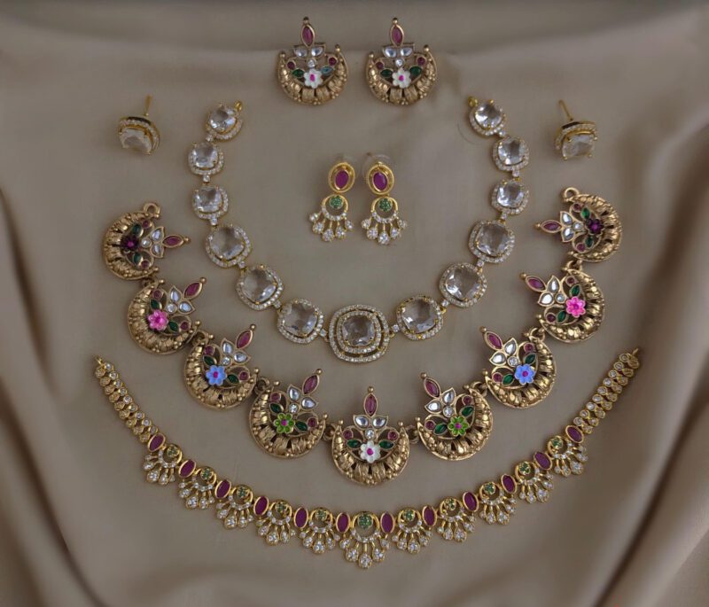 Elegant and timeless, the AD jewellery set includes a necklace and earrings. Designed to combine sophistication with traditional charm, it is perfect for both weddings and special occasions.