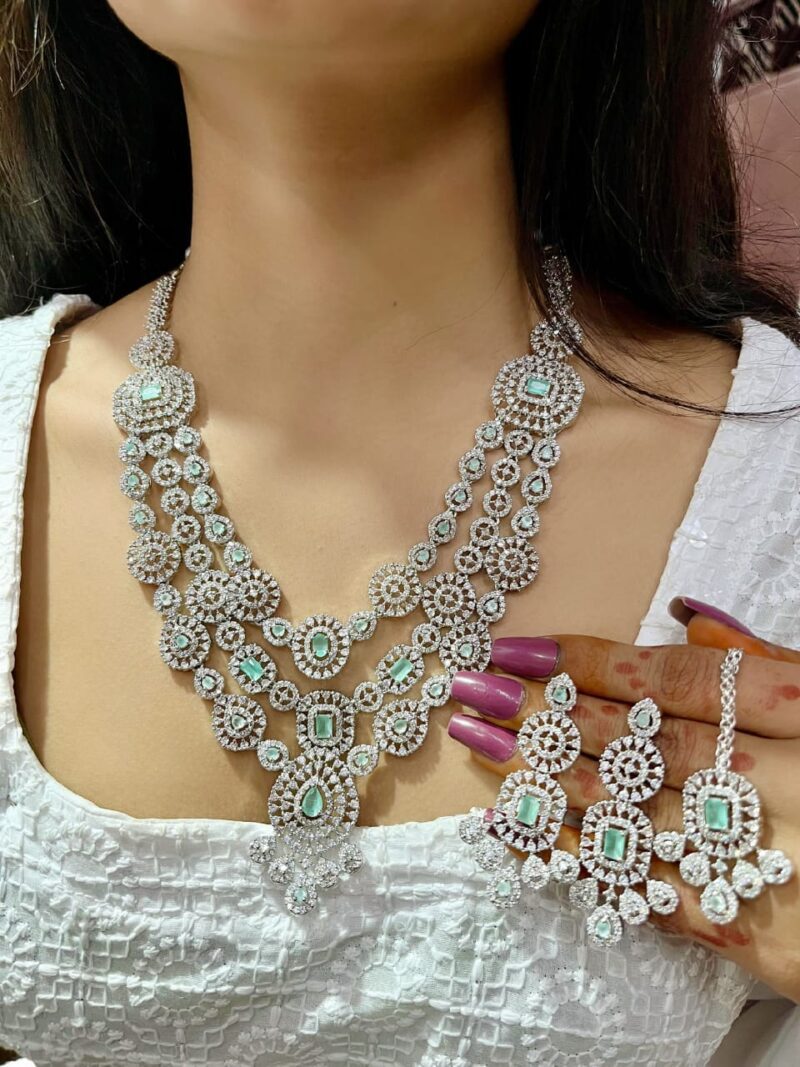 Elegant and timeless, the AD jewellery set includes a necklace’s and earrings. Designed to combine sophistication with traditional charm, it’s perfect for both weddings and special occasions.