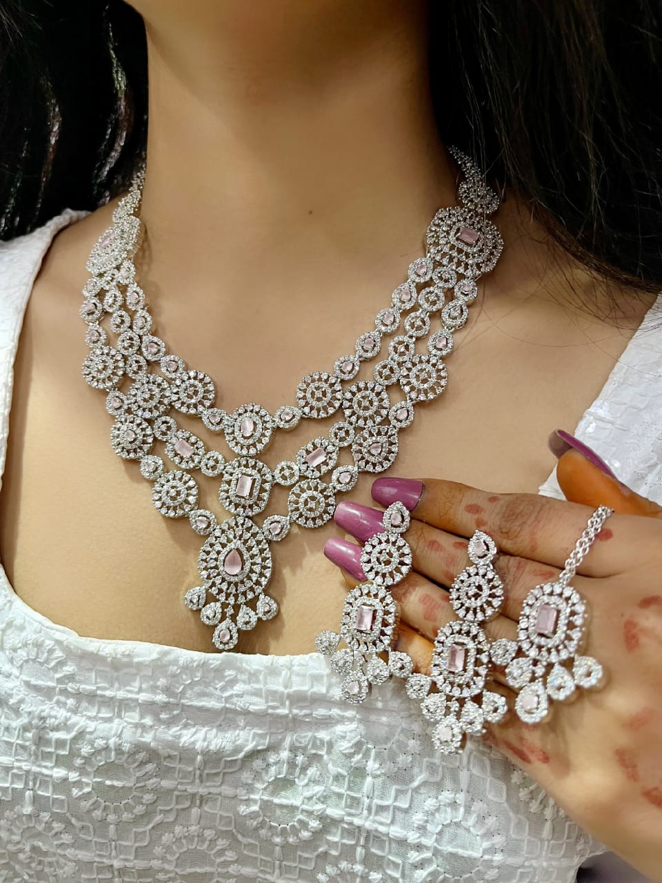Elegant and timeless, the AD jewellery set includes a necklace’s and earrings. Designed to combine sophistication with traditional charm, it’s perfect for both weddings and special occasions.