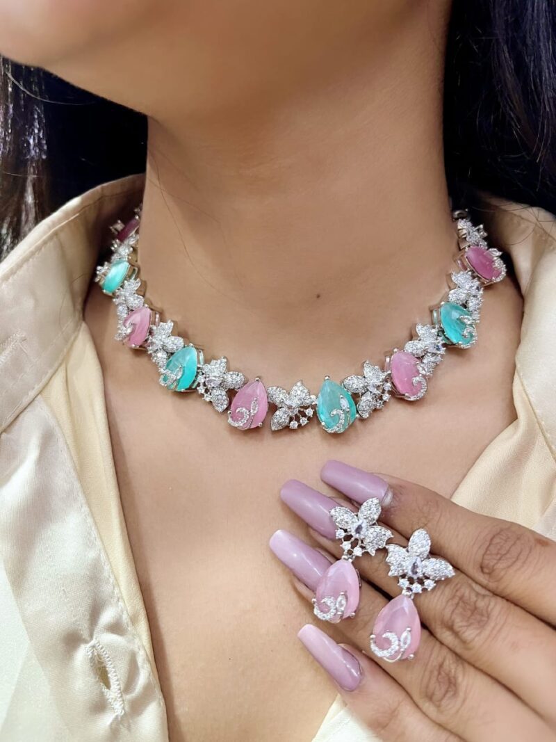 Elegant and timeless, the AD jewellery set includes a necklace’s and earrings. Designed to combine sophistication with traditional charm, it’s perfect for both weddings and special occasions.