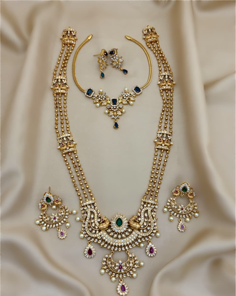 Elegant and timeless, the AD jewellery set includes a necklace and earrings. Designed to combine sophistication with traditional charm, it is perfect for both weddings and special occasions.