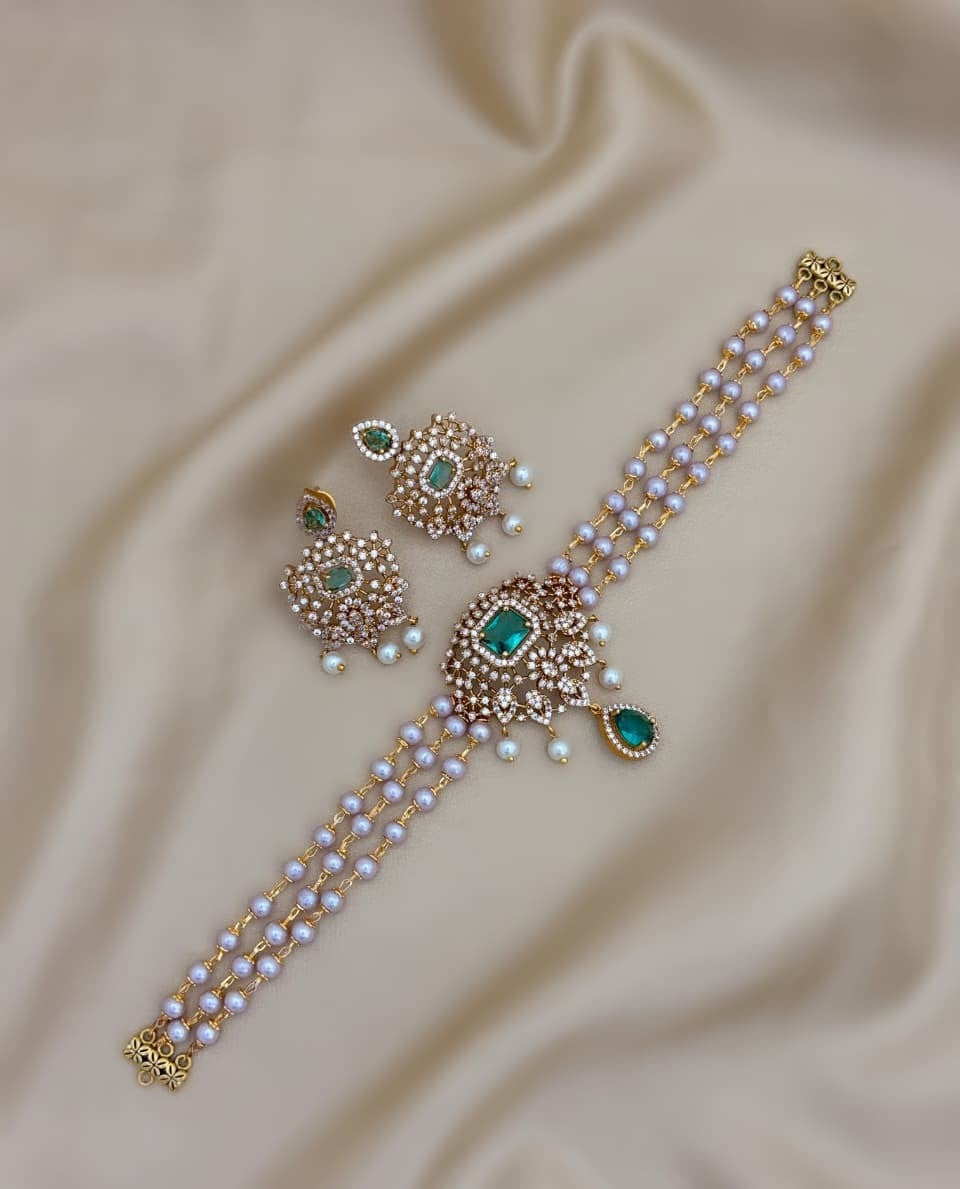 Elegant and timeless, the AD jewellery set includes a necklace and earrings. Designed to combine sophistication with traditional charm, it is perfect for both weddings and special occasions.