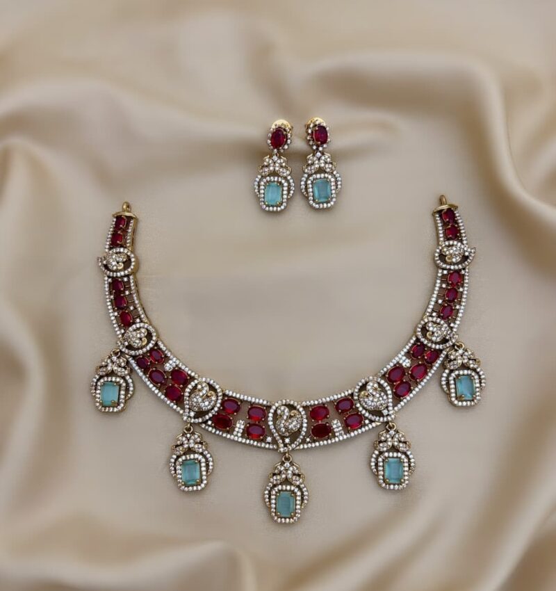 Elegant and timeless, the AD jewellery set includes a necklace and earrings. Designed to combine sophistication with traditional charm, it is perfect for both weddings and special occasions.