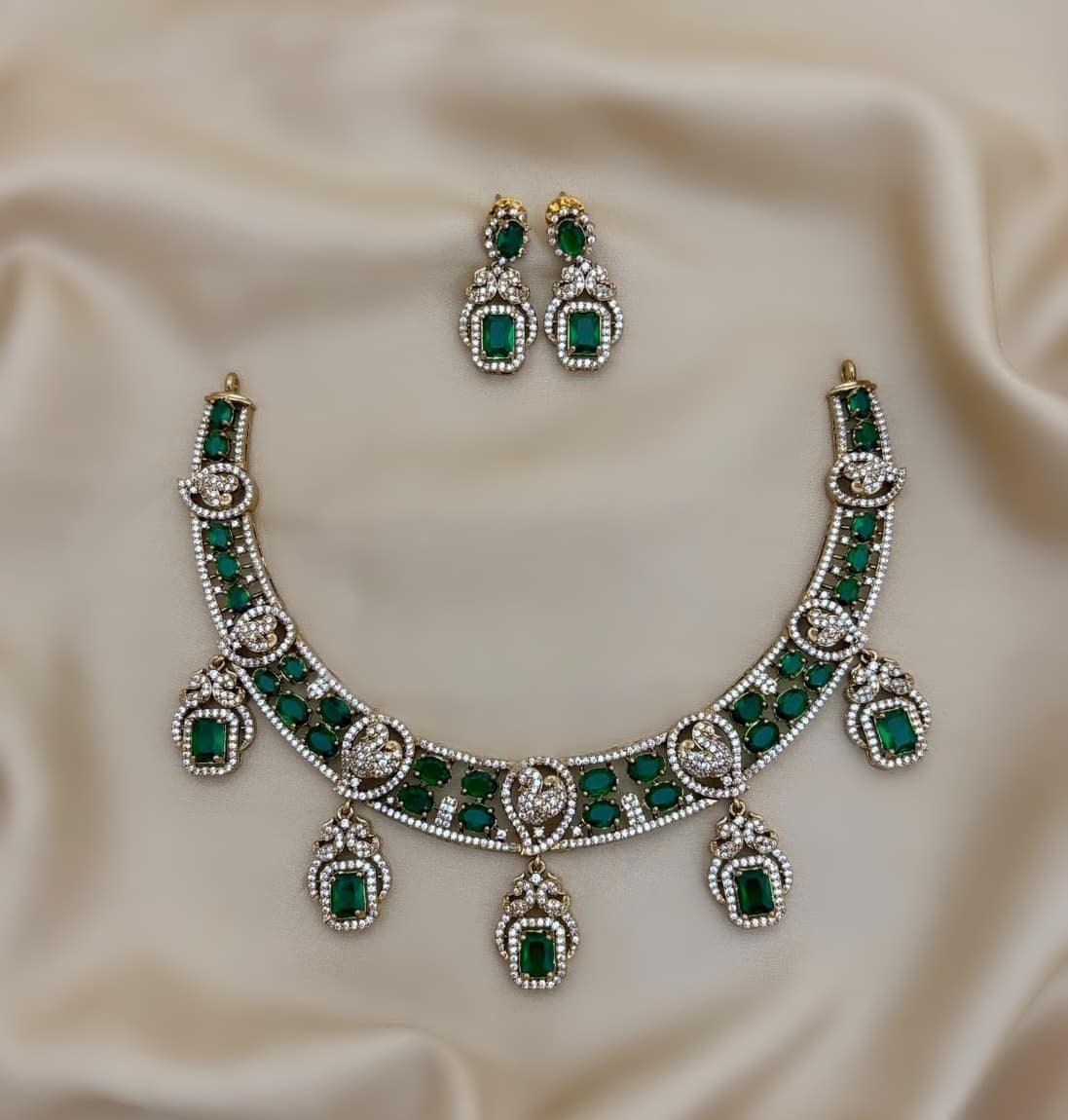 Elegant and timeless, the AD jewellery set includes a necklace and earrings. Designed to combine sophistication with traditional charm, it is perfect for both weddings and special occasions.