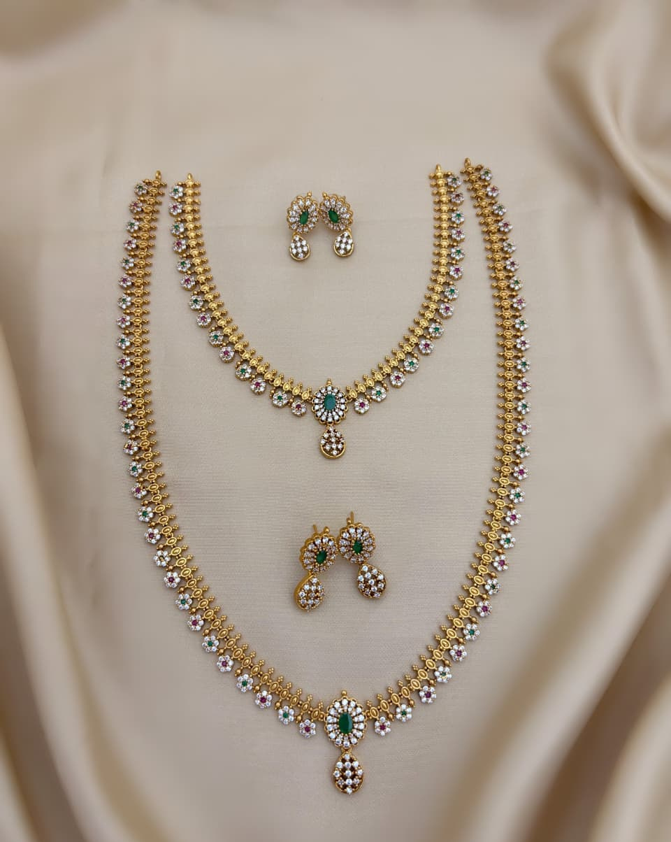 Elegant and timeless, the AD jewellery set includes a necklace and earrings. Designed to combine sophistication with traditional charm, it is perfect for both weddings and special occasions.