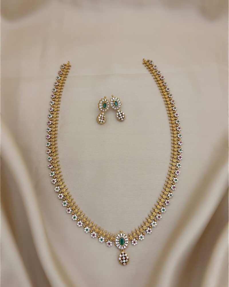 Elegant and timeless, the AD jewellery set includes a necklace and earrings. Designed to combine sophistication with traditional charm, it is perfect for both weddings and special occasions.