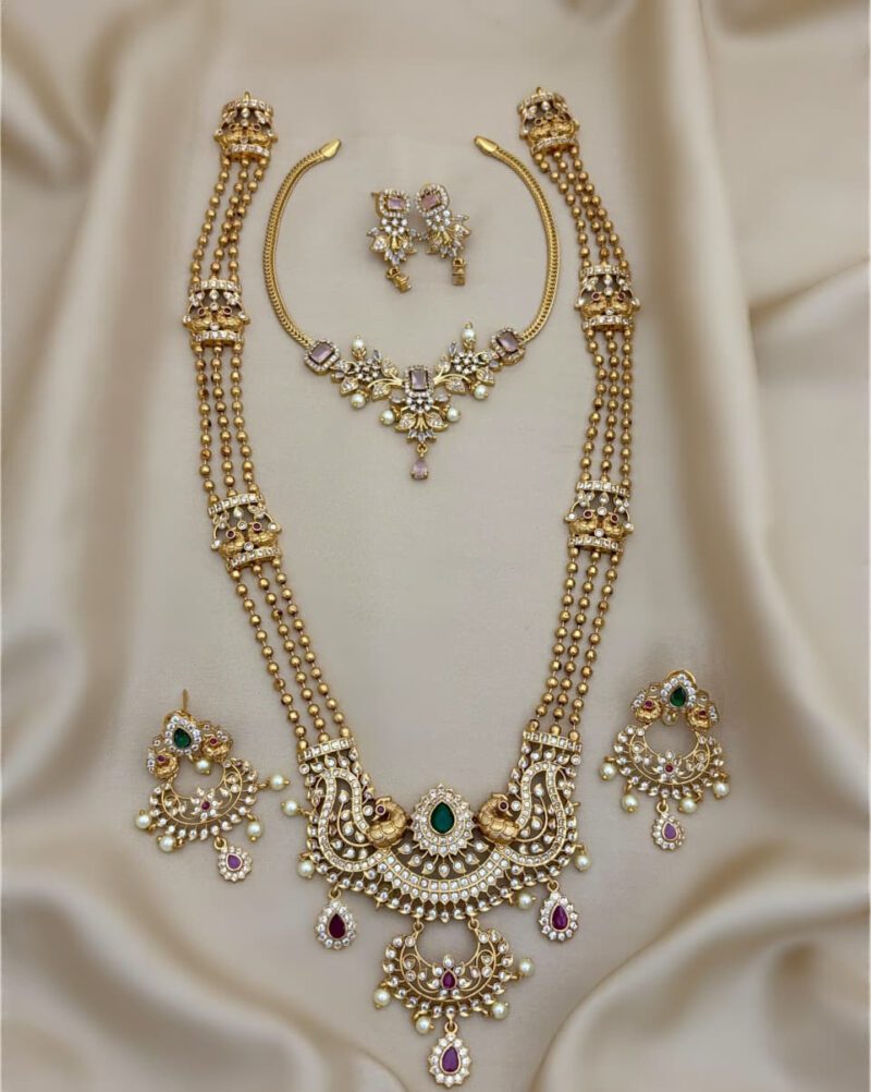 Elegant and timeless, the AD jewellery set includes a necklace and earrings. Designed to combine sophistication with traditional charm, it is perfect for both weddings and special occasions.