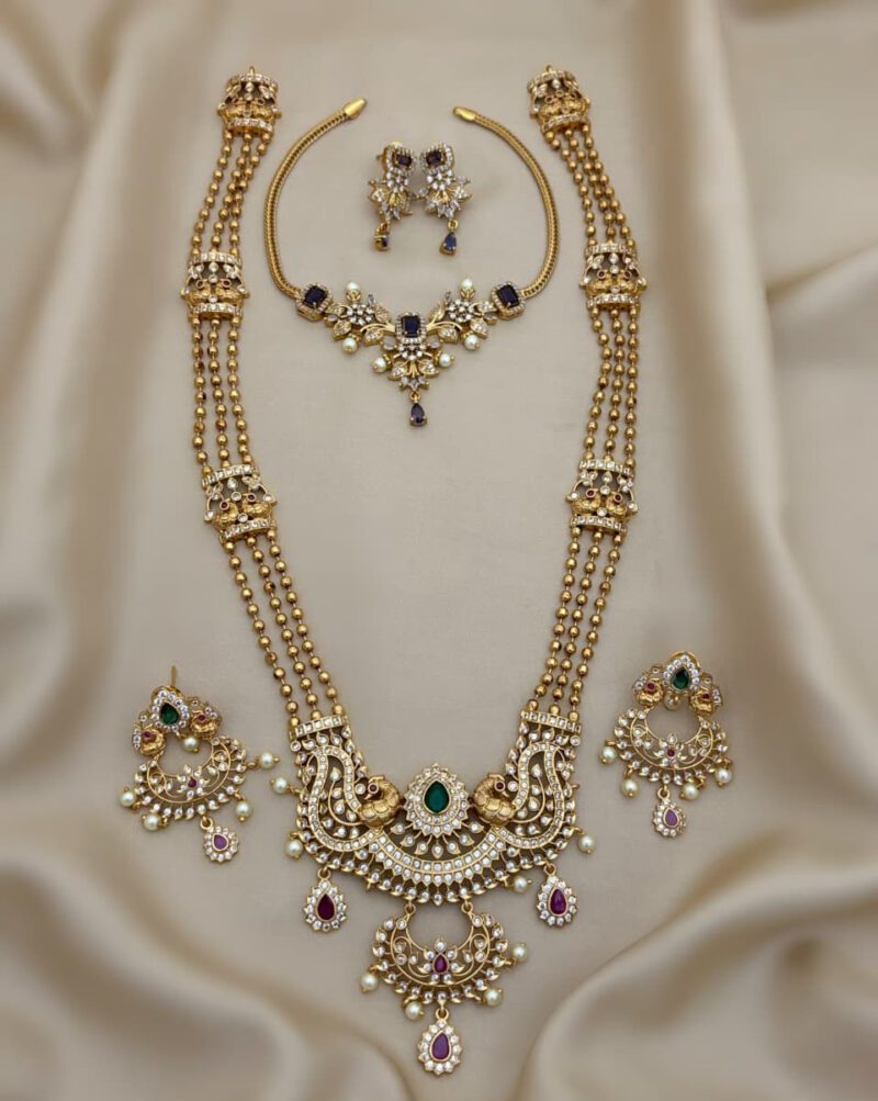 Elegant and timeless, the AD jewellery set includes a necklace and earrings. Designed to combine sophistication with traditional charm, it is perfect for both weddings and special occasions.