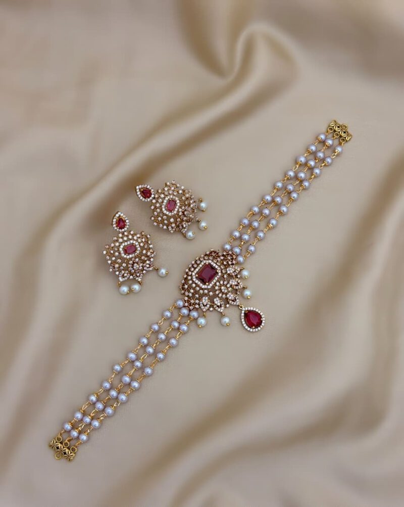 Elegant and timeless, the AD jewellery set includes a necklace and earrings. Designed to combine sophistication with traditional charm, it is perfect for both weddings and special occasions.
