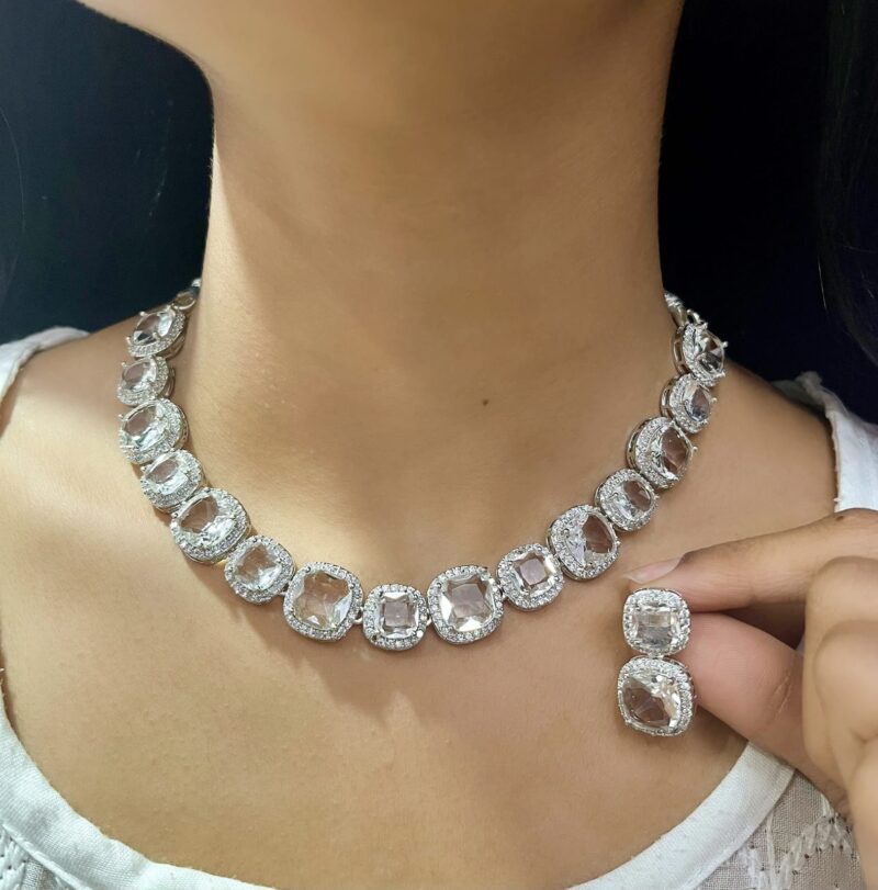 Elegant and timeless, the AD jewellery set includes a necklace’s and earrings. Designed to combine sophistication with traditional charm, it’s perfect for both weddings and special occasions.