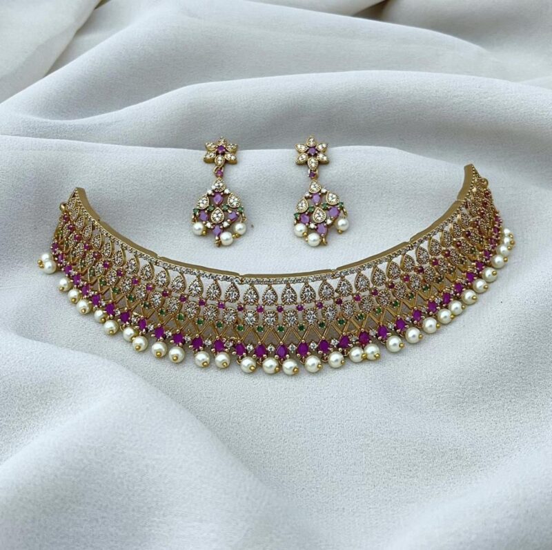 Elegant and timeless, the AD jewellery set includes a necklace’s and earrings. Designed to combine sophistication with traditional charm, it’s perfect for both weddings and special occasions.