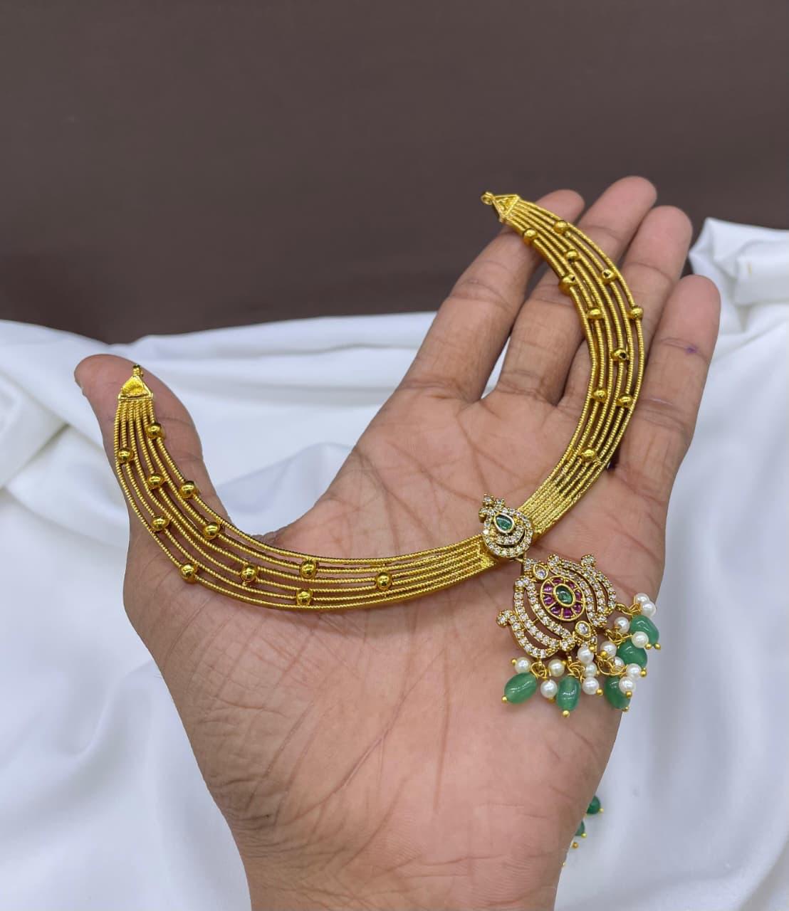 Elegant AD necklace set designed with fine craftsmanship, giving a regal and timeless appeal for any ethnic outfit.