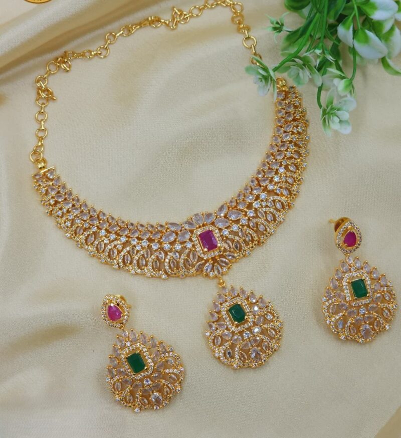 Pradnya in our American Diamond Necklace Set