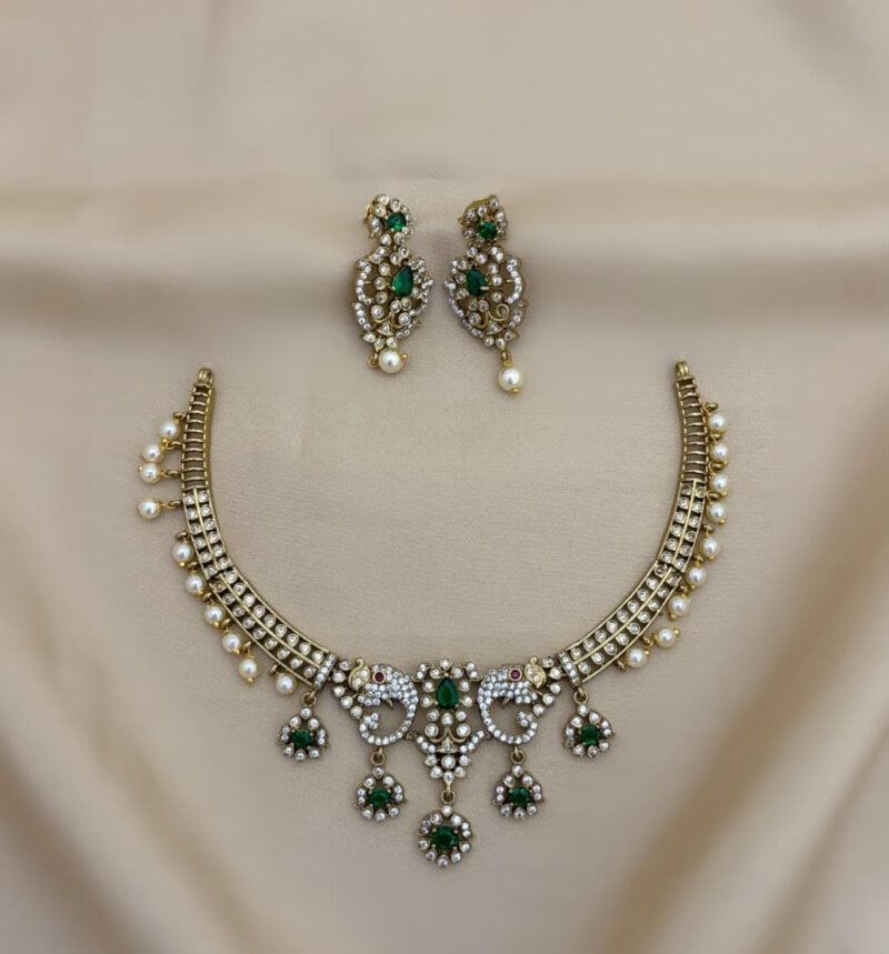 Elegant and timeless, the AD jewellery set includes a necklace and earrings. Designed to combine sophistication with traditional charm, it’s perfect for both weddings and special occasions.