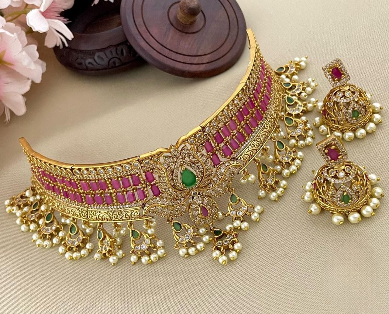 Elegant and timeless, the AD jewellery set includes a necklace’s and earrings. Designed to combine sophistication with traditional charm, it’s perfect for both weddings and special occasions.