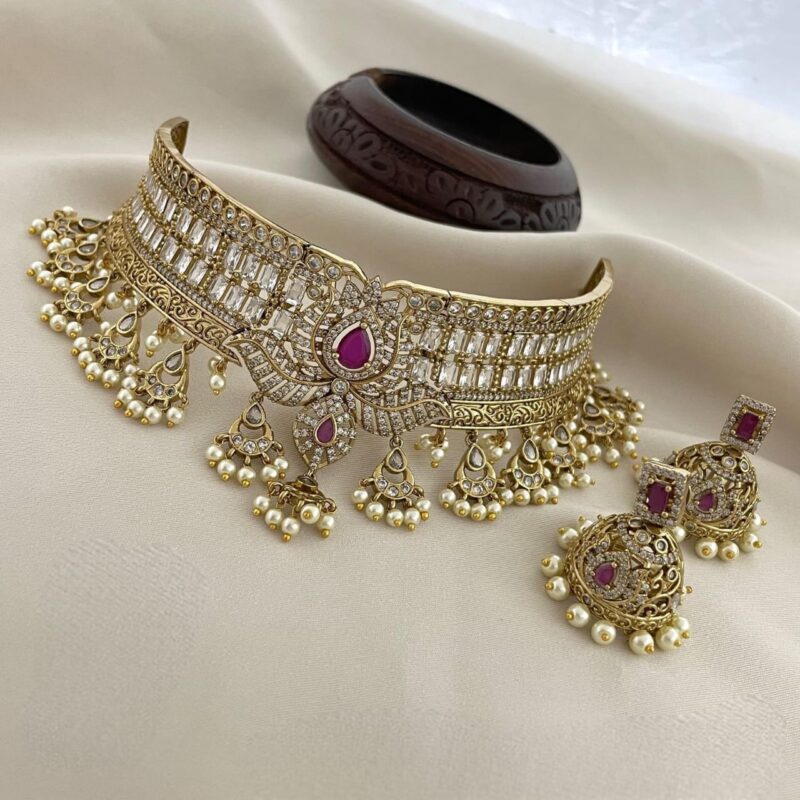 Elegant and timeless, the AD jewellery set includes a necklace’s and earrings. Designed to combine sophistication with traditional charm, it’s perfect for both weddings and special occasions.