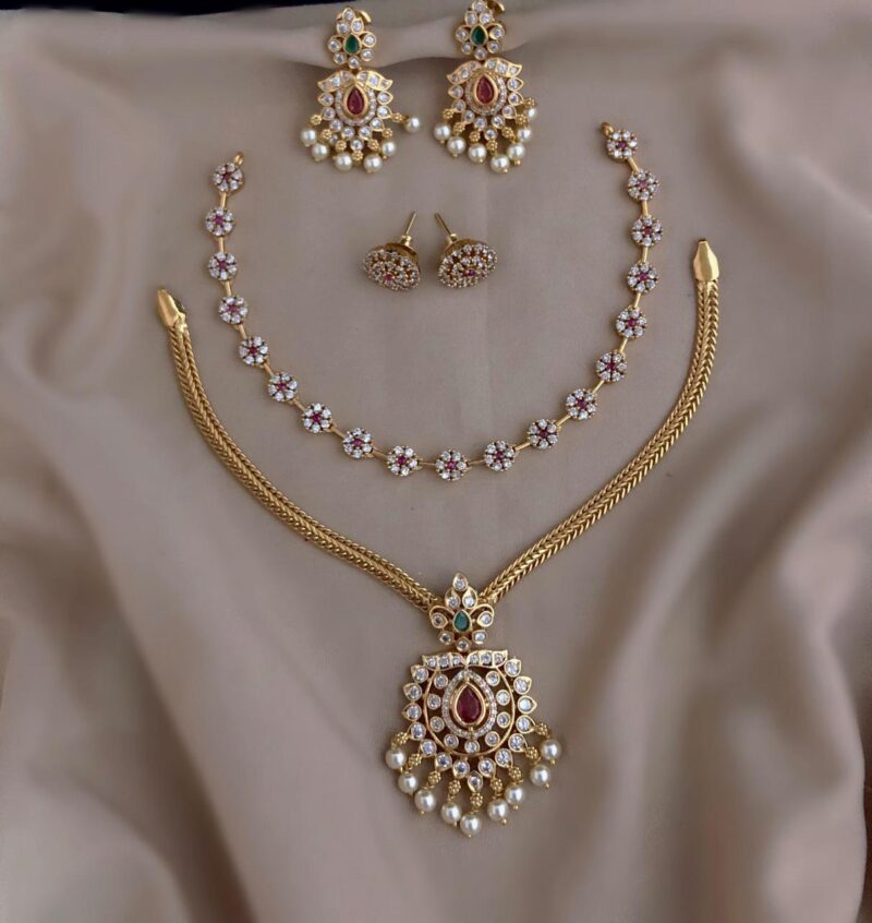 Elegant and timeless, the AD jewellery set includes a necklace’s and earrings. Designed to combine sophistication with traditional charm, it’s perfect for both weddings and special occasions.