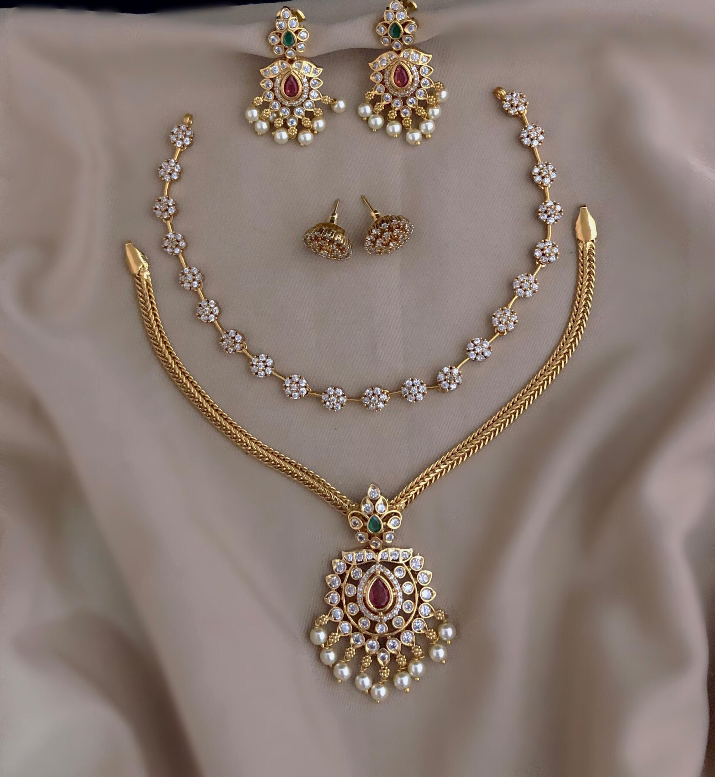 Elegant and timeless, the AD jewellery set includes a necklace’s and earrings. Designed to combine sophistication with traditional charm, it’s perfect for both weddings and special occasions.