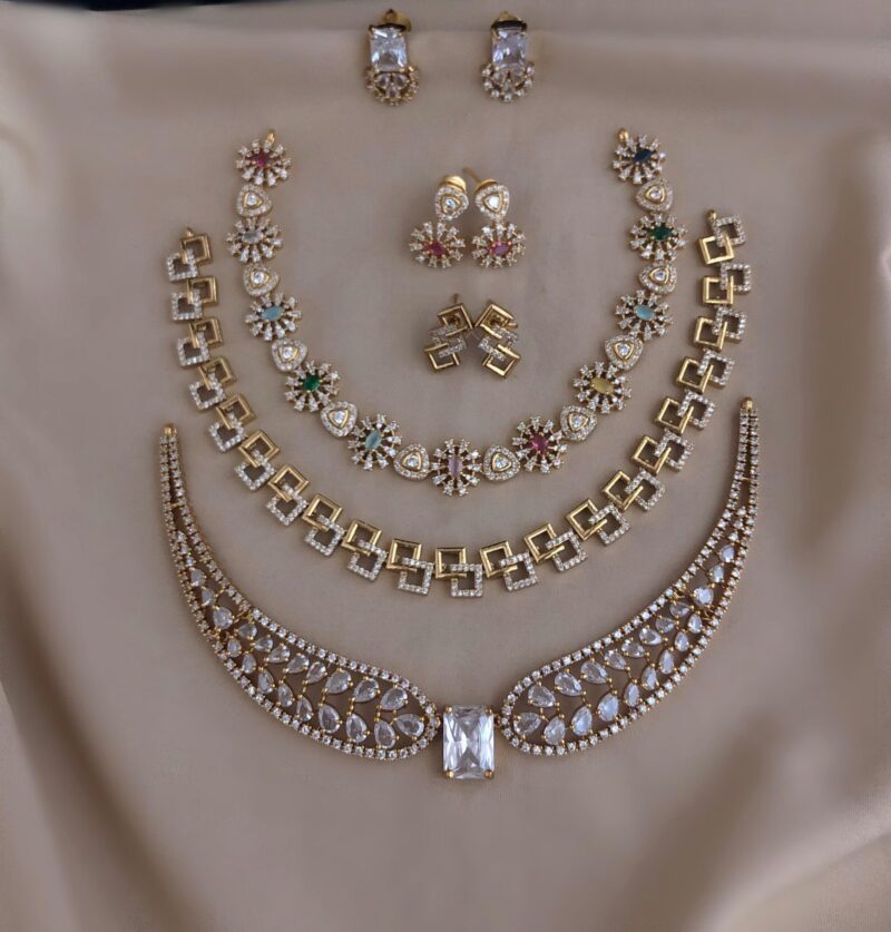 Pure Zirconian Diamond Necklace Set (3 Sets), ORN10586