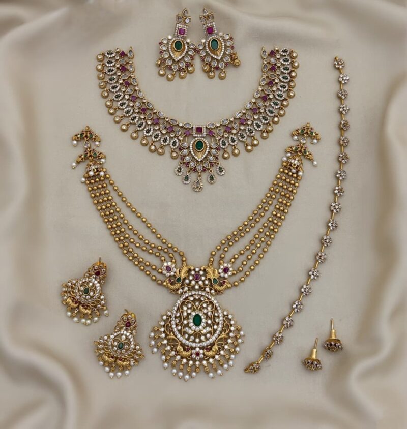 Elegant and timeless, the AD jewellery set includes a necklace’s and earrings. Designed to combine sophistication with traditional charm, it’s perfect for both weddings and special occasions.