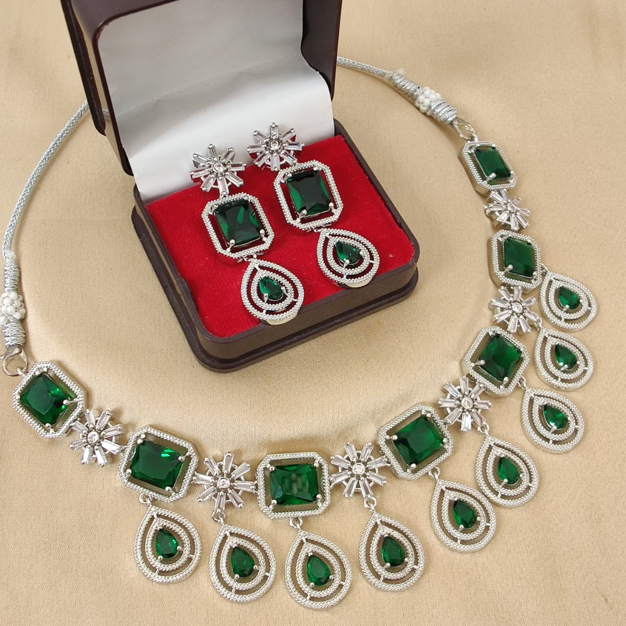Elegant and timeless, the AD jewellery set includes a necklace’s and earrings. Designed to combine sophistication with traditional charm, it’s perfect for both weddings and special occasions.