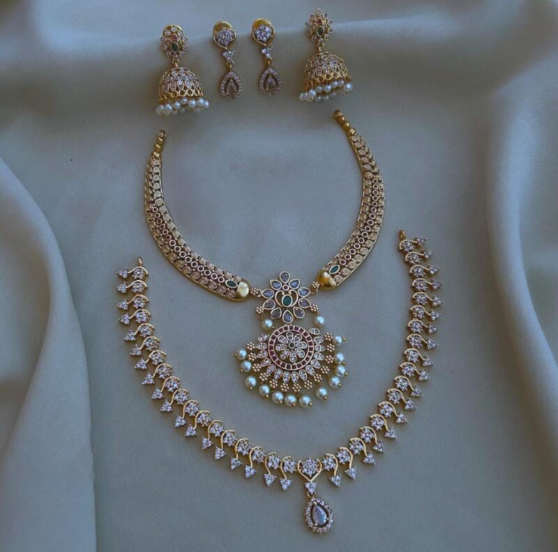 Elegant and timeless, the AD jewellery set includes a necklace’s and earrings. Designed to combine sophistication with traditional charm, it’s perfect for both weddings and special occasions.