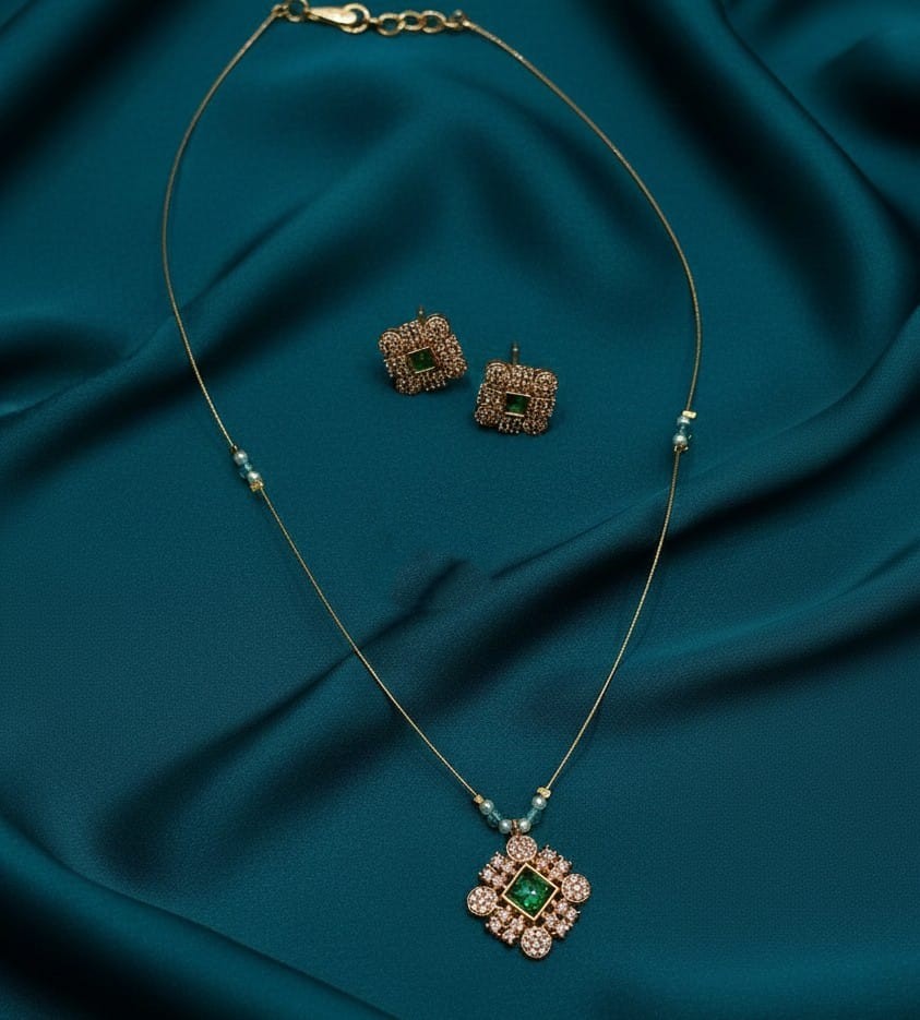 A sleek and elegant Pure Zirconian necklace set featuring a sparkling pendant and matching earrings. Designed with a shiny zircon centre stone and delicate chain, perfect for daily wear or special occasions.