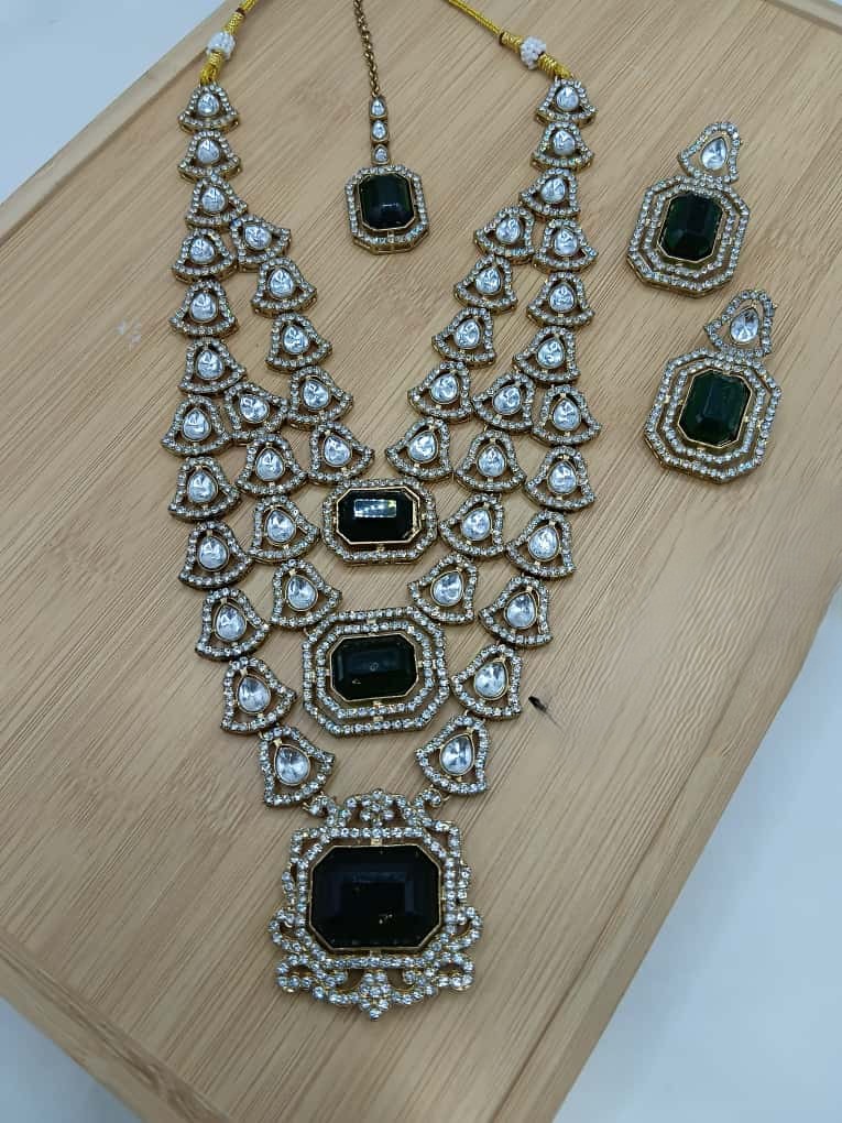 Rajwadi Kundan and Beads Necklace with Earrings, ORN10224