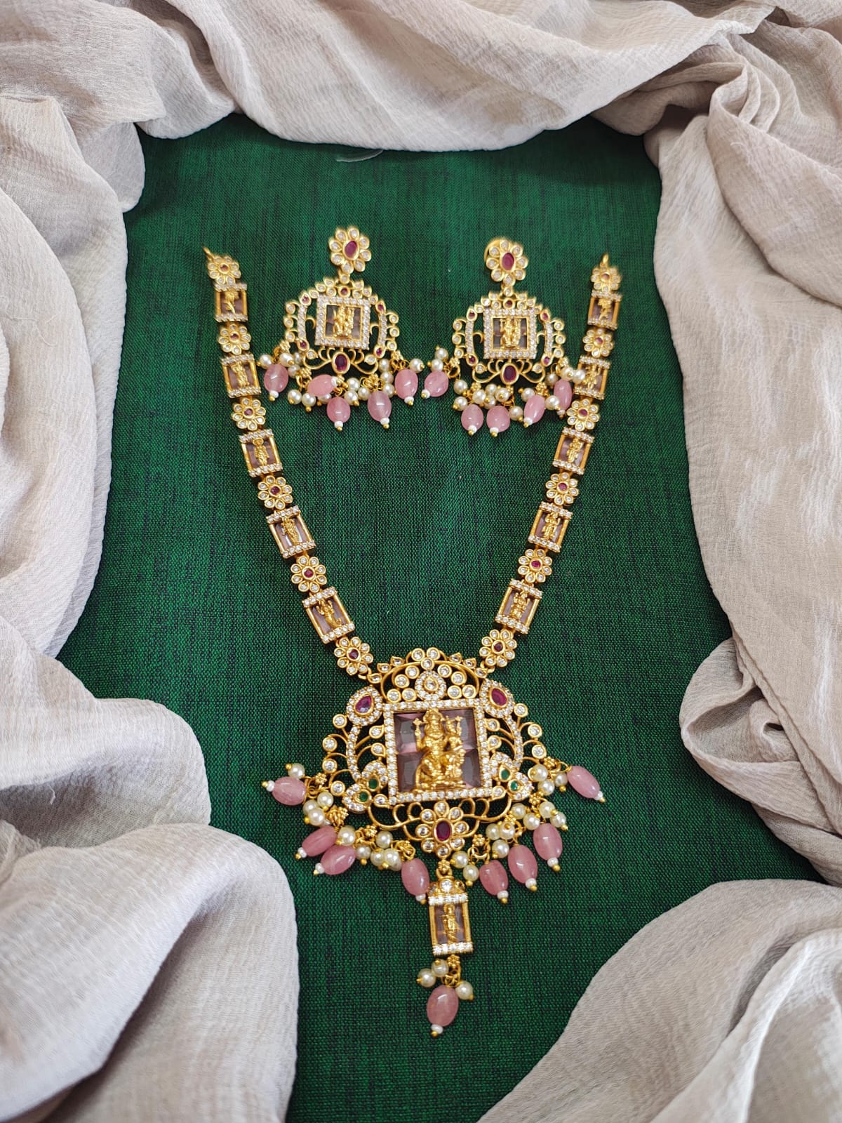 Pure Zirconian Diamond Temple Jewellery Set, ORN10090