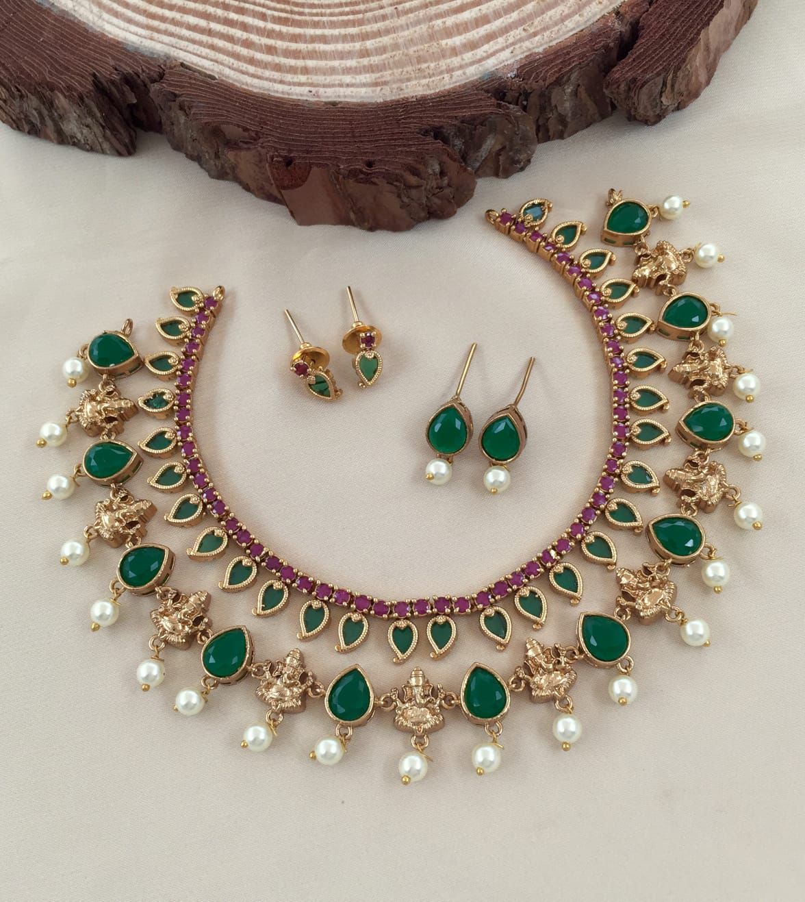 Temple Kundan Necklace with Earrings Set (2 Sets), ORN31223